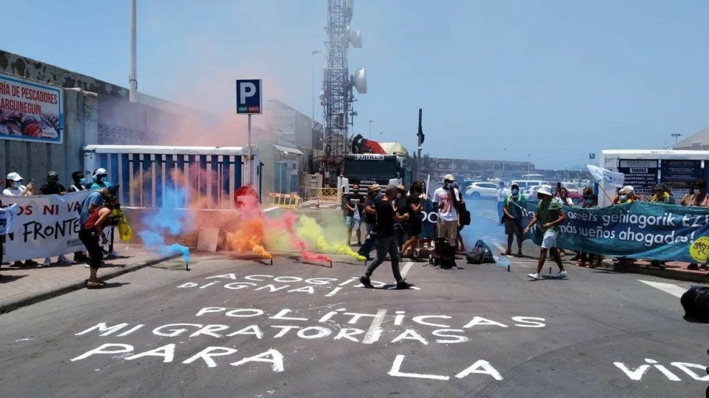Igualmente, denunciamos la criminalización que se hace  a las personas que defienden este derecho a migrar. Por ello, nos adherimos a la NdP de Caravana Abriendo Fronteras, que en este año 2021 en Canarias ha sido fuertemente sancionada, de forma injustificada.