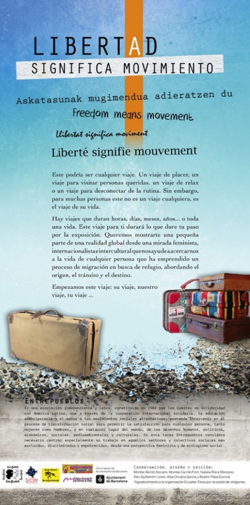 La exposición ” Libertad significa Movimiento” elaborada por Entrepueblos y SICOM se compone de 11 paneles con texto, fotografías y gráficos.